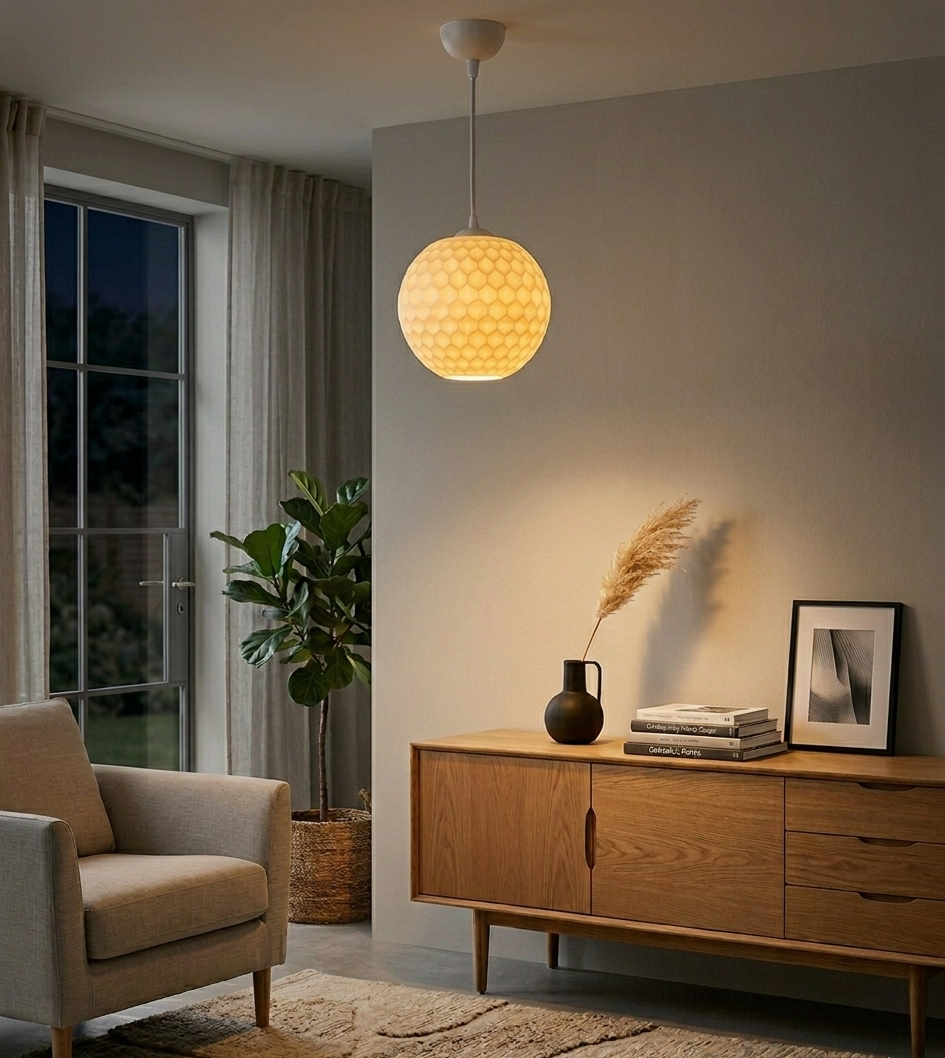 Ob über dem Esstisch, im Wohnzimmer oder im Schlafzimmer – diese Leuchte wird zum stilvollen Highlight in jedem Raum.